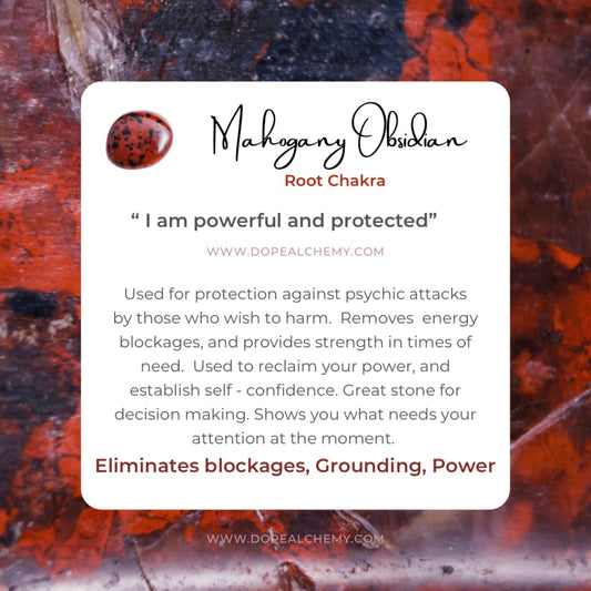Mahognay Obsidian is a perfect meditation tool for anyone working to release negative energies and stimulate growth on all levels. This stone works on cleansing ones aura and providing protection from future incoming vibrations that may cause one distress or discomfort. Gives strength in the time of need. It helps to balance the yin-yang energy of the body and works within the solar plexus to boost your personal power. Mahogany Obsidian is helpful to use to shield you from psychic attack and help to remove psychic implants. They also have a strong grounding energy, helping to open and cleanse your grounding channel. Helps to heal ancestral wounding that can be present from being part of a historically oppressed or traumatized group.