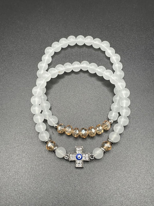 White jade x evil eye x cross charm bracelet